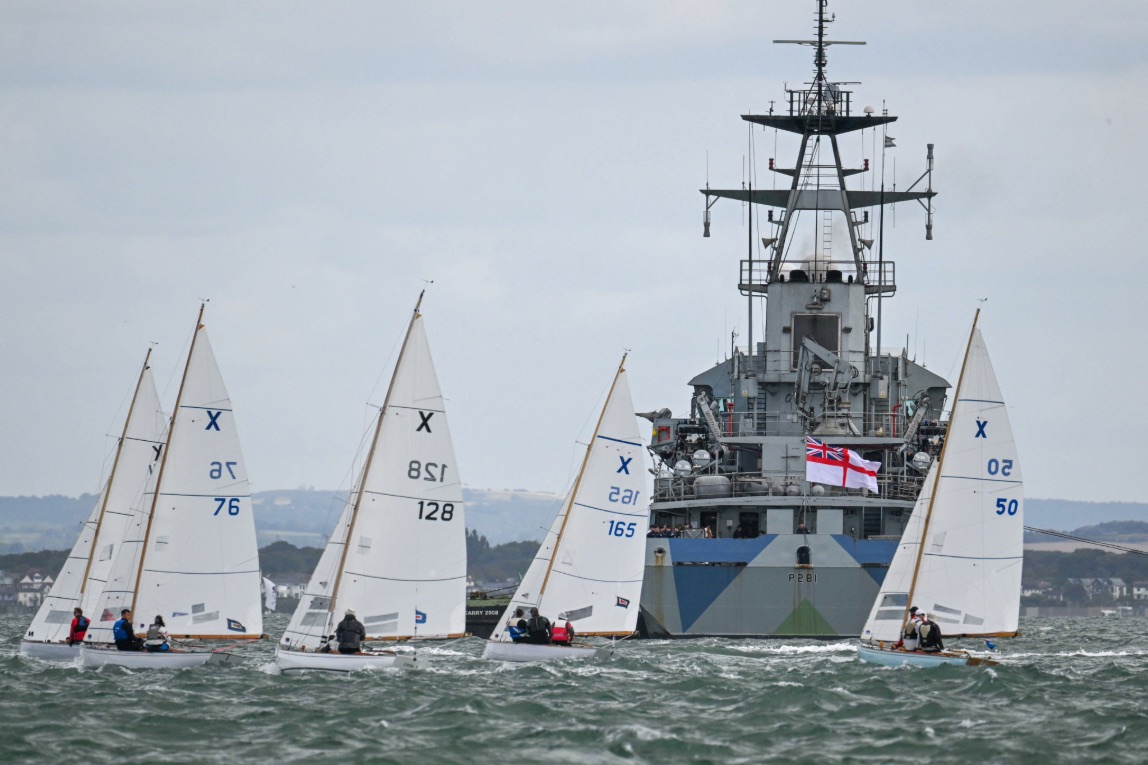 With the extra boom of the big guns seeing them away, Class Zero and the Cape 31s were the first start away from the Squadron this morning, powering upwind towards Salt Mead. Their final mark is East Bramble and from there they are due to finish upwind on the Squadron line.